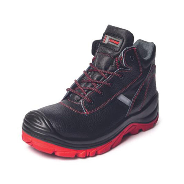 Description: Safety boots with a non-metallic toe cap and a puncture resistant insole, water proof, antistatic, antislip, oil resistant PU/rubber sole, energy absorption in the heel, breathable leather upper and reflective components for increased visibility. The unique PU/Rubber outsole.