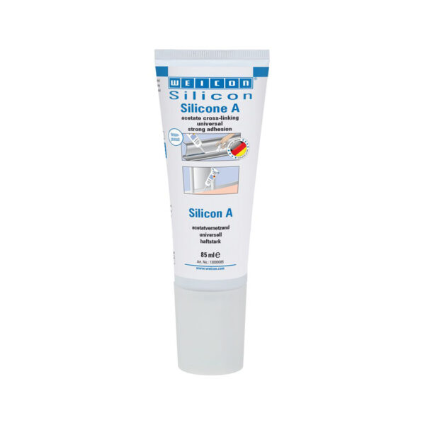 WEICON Silicone A is solvent-free, acetoxy-curing, strong, permanently elastic, resistant to ageing and chemicals, temperature-resistant up to +180°C (+356°F), extremely elastic (breaking elongation >700%) and can be used universally. Silicone A adheres very well to steel, aluminium, glass, ceramics, and many other materials. Silicone A can be used in machine and system construction, ventilation and air conditioning systems, in the energy and electrical industry, in exhibition construction and shopfitting and in many other industrial applications.