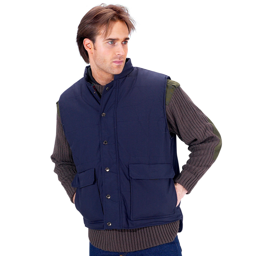 Description: men´s working jacket with zipper closure and placket cover » detachable sleeves » 2 front pockets » 2 chest double pockets with flaps » 1 small pocket o left sleeve » reinforcement in stressed parts of shoulders and elbows » elastic cuffs and bottom waist hem.