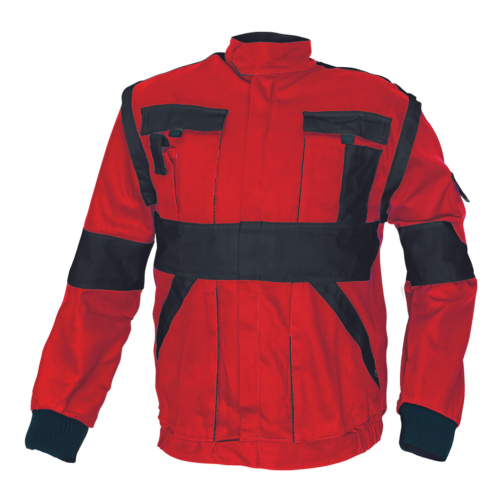 Description: men´s working jacket with zipper closure and placket cover » detachable sleeves » 2 front pockets » 2 chest double pockets with flaps » 1 small pocket o left sleeve » reinforcement in stressed parts of shoulders and elbows » elastic cuffs and bottom waist hem.